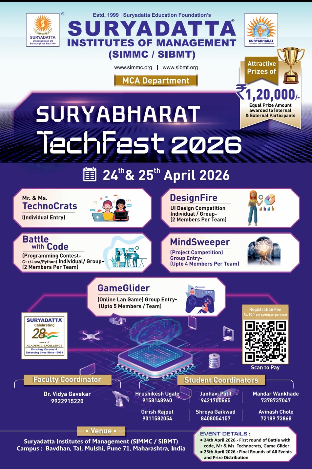 I, Riddhi Vinod Bhoyar, a student of MCA at Suryadatta Institute of Business Management and Technology, express my heartfelt gratitude to the institution for a rewarding academic journey. I am delighted to share that I have received placement offers, thanks to the quality education, mentorship, and continuous support from the faculty and placement cell. The internship opportunity provided by the institute greatly enhanced my practical knowledge. Participation in projects, industry sessions, and co-curricular events helped shape my personal and professional growth. I am proud to be a part of the Suryadatta Group of Institutes and sincerely thank everyone who contributed to my success.