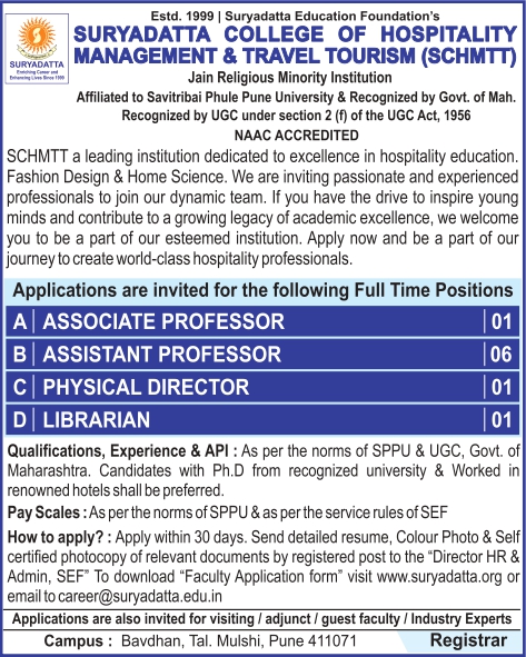Suryadatta Institute of Management and Mass Communication (SIMMC) is looking for skilled faculty in CRM Development! If you have a passion for teaching and hands-on experience in development, programming, and database management, we want you on our team!