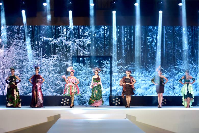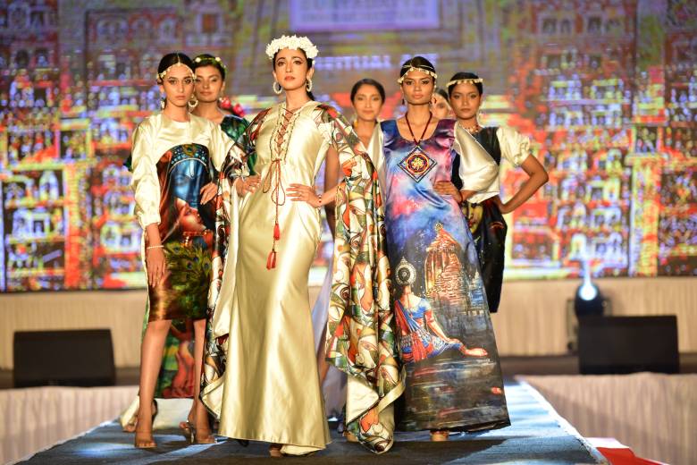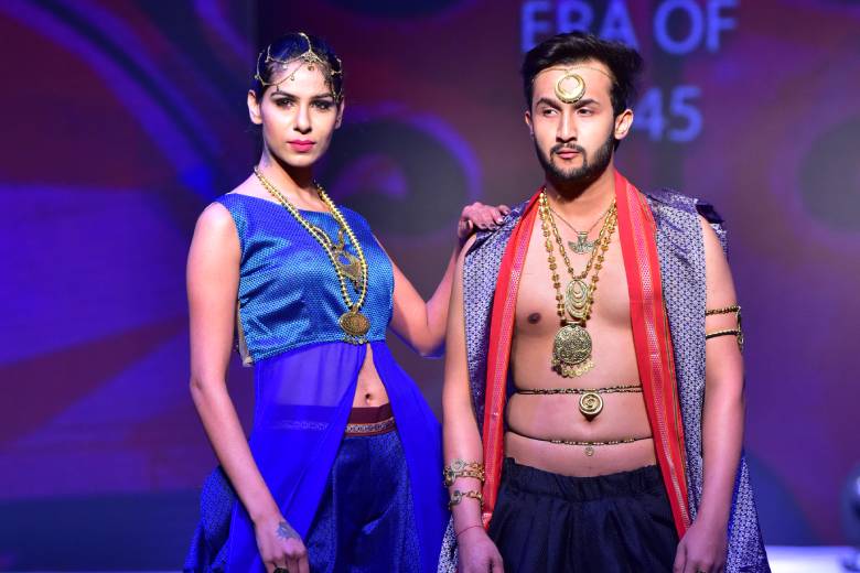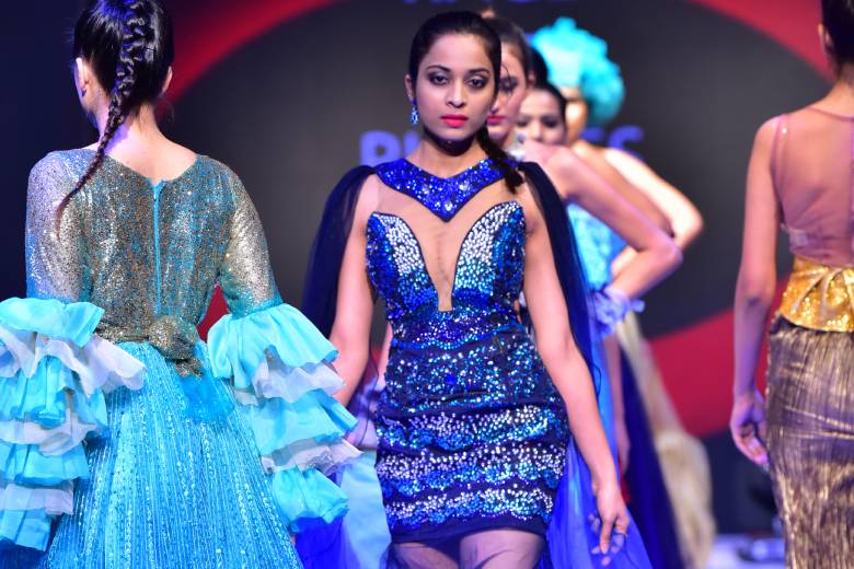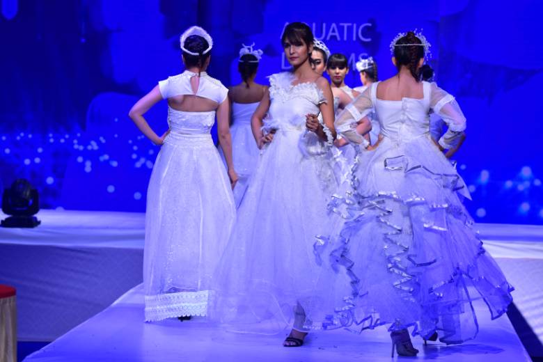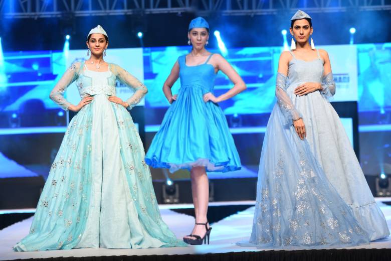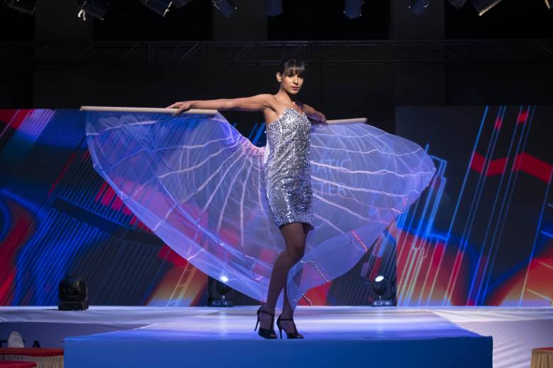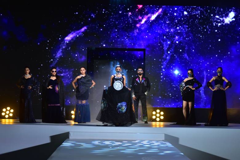 Year 2017 : Our “New Style Innovation” tagline focused on the central theme of the show, which was Architecture, Biomimicry, and Synthesis. Architecture sub-themes included Moscow Church, Moroccan Architecture, Moon tower, Rajasthani windows, etc. Bio-mimicry focused on themes such as galaxies, the big bang, and flowery creepers. Synthesis included outfits that blended opposite elements, such as fire and ice, nature and machinery, and soft and hard.