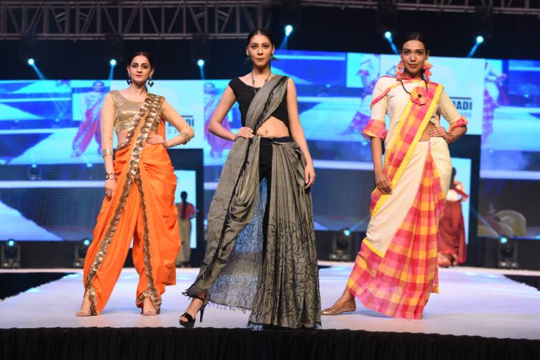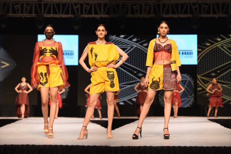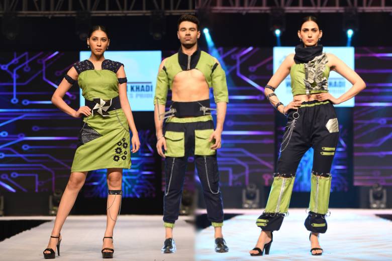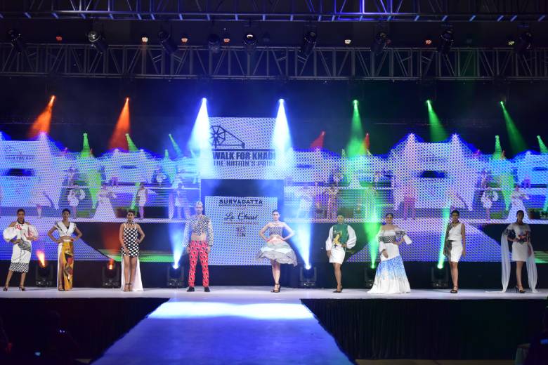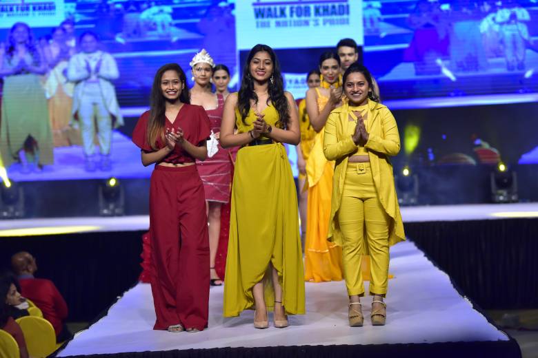 Year 2020 : To promote the use of Indian fabrics, particularly Khadi aiming to revive this traditional craft,opportunities for rural artisans, and encourage sustainable fashion. We launched our theme “Walk for Khadi” with the tagline “The Nation’s Pride.” This theme was divided into seven sub-themes: Draped Drama, Khadi-Metric, Psychedelic Khadi, Fraying Love, Khadism, Dual World, and Techno World
