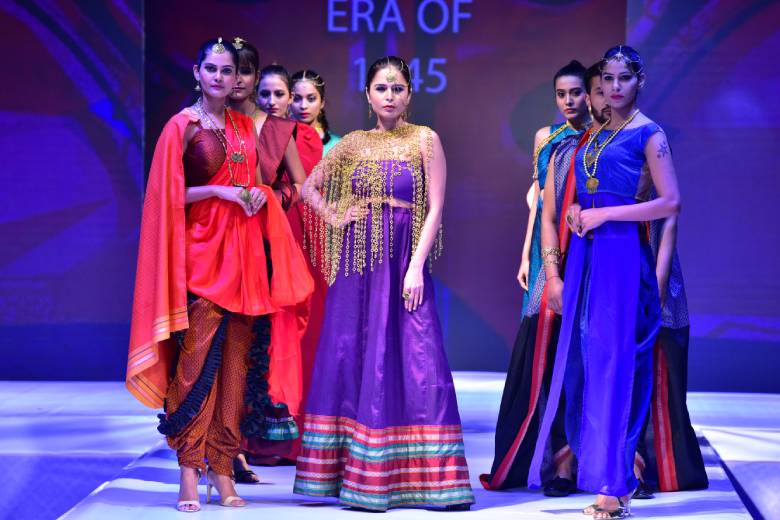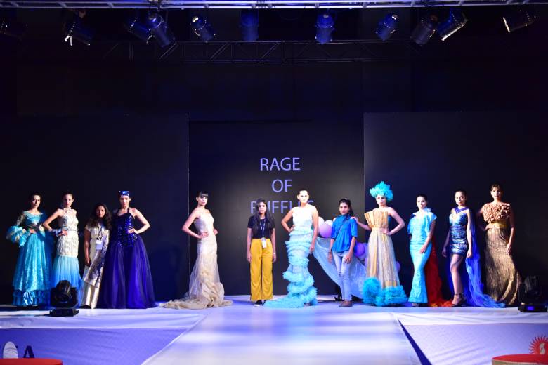Year 2019 : La Classe’s central theme of “Innovation on Trend” was divided into nine distinct themes to showcase various fabric manipulation, surface ornamentation, and embellishment techniques. These included: The Rage of Ruffles, Banjara – The Wandering Souls, Aquatic Dreams, African Wardrobe, Glory Girls, Era of 1945, Dramatic Disaster, The Denim Hangover, and Mysterious Creations.