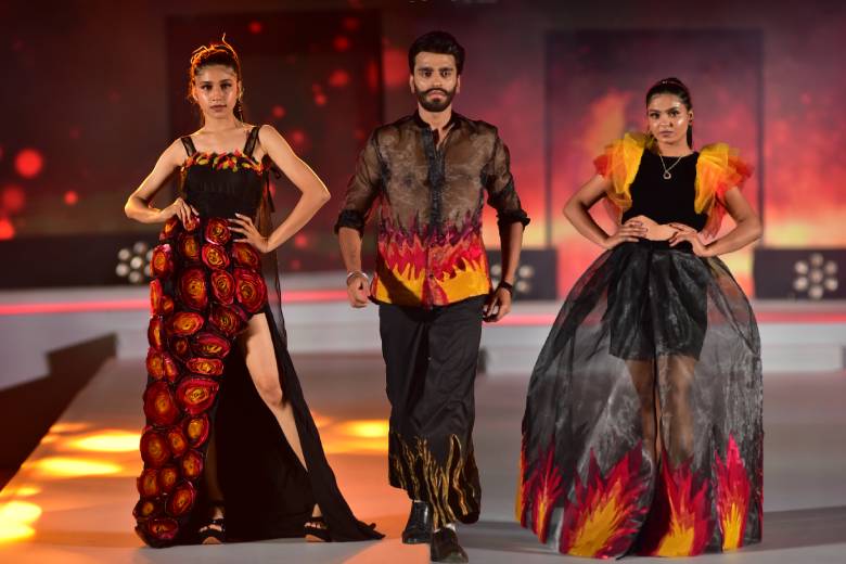 The 12th edition of La Classé was themed “Panchmahabhoot”, celebrating the five essential elements of nature — Earth, Water, Fire, Air, and Space. Students of SIFT translated the essence of these elements into beautifully crafted ensembles, each reflecting deep research, creativity, and a strong design process.