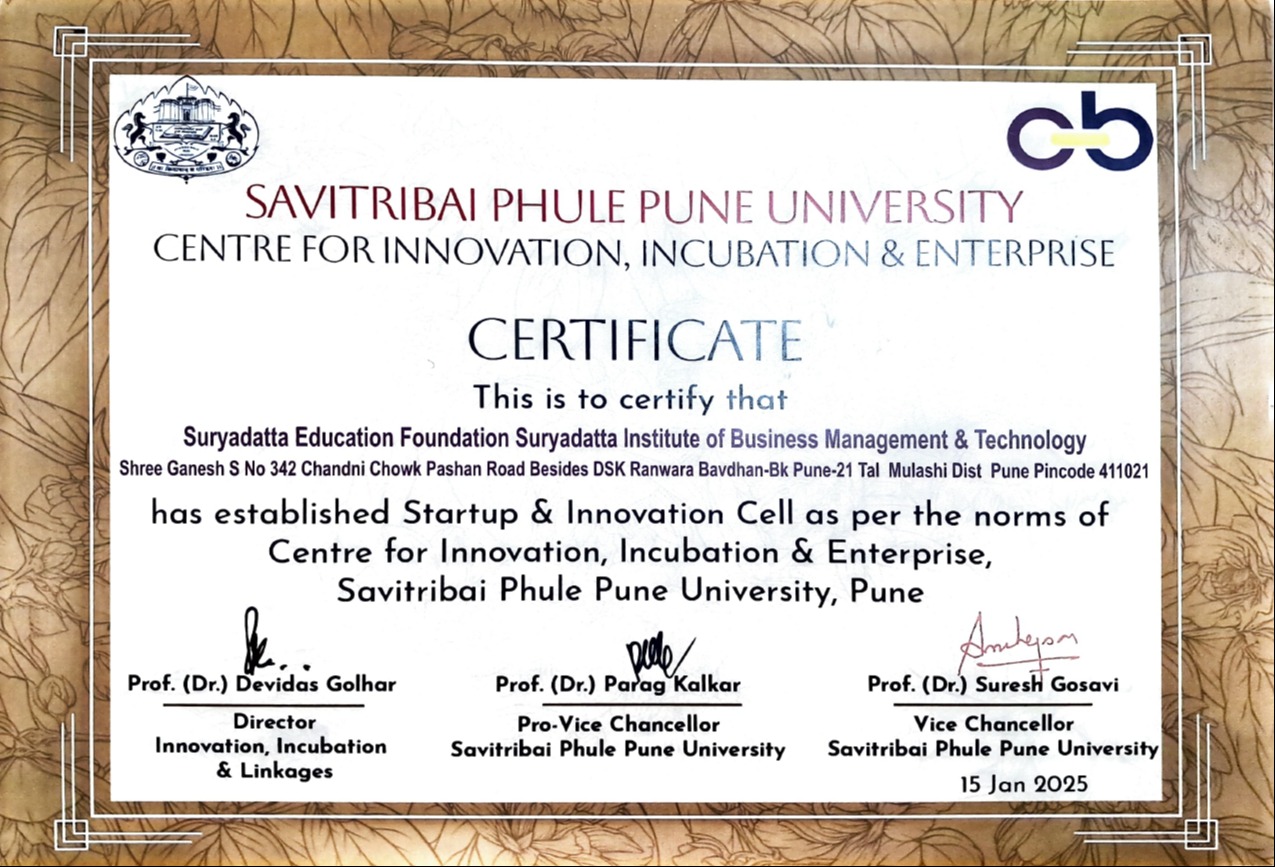 Suryadatta Group of institutes a renowned name in management education which has provide over 16000 managers & leaders in last 18 yrs. Suryadatta Incubation Centre is born with the vision of bringing decades of experience & expertise to the entrepreneurial world. We understand that majority of startups fail to make the cut, simply because they do not get the right guidance and the tools to steer them on the path to success. We realize the changing dynamics of new-age technology businesses & the need of a nurturing eco-system that allows wannabe entrepreneurs to focus on their core business. Suryadatta Incubation Centre envisions incubating business in the Information technology & manufacturing domain from across the globe.
